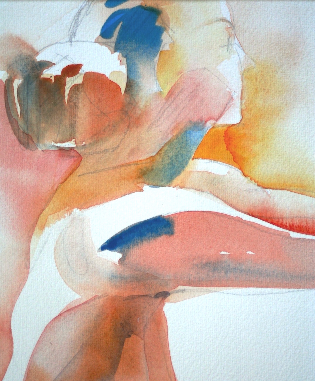 Celebrating the human form with expressive brushstrokes and transparent washes of saturated color ….